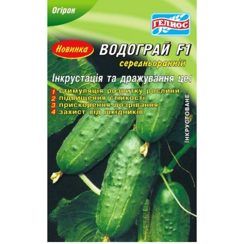 Семена инкрустированные огурец Водограй F1 пчелоопыляемый (25 сем.) описание, отзывы, характеристики