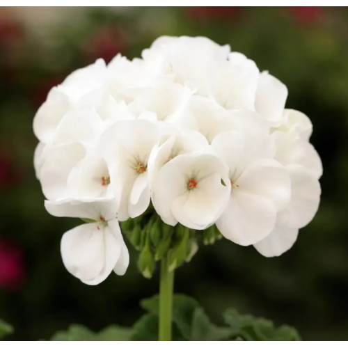 Арт. 92-687 Виробник Floranova. Великобританія Високоякісний вид пеларгонії, який характеризується вирівняністю за періодом цвітіння та різноманітністю кольорів. Ідеально підходить для вирощування великих об'ємів продукції при низьких виробничих затратах. Для комерційних потреб краще вирощувати у горщиках діаметром 14 см. Добре розвинена коренева система на початковому етапі, дає можливість рослині розкрити свій потенціал декоративності. У відкритому грунті об'ємні кущі, заввишки 30-35 см і завширшки 25- 30 см, цвітуть протягом усього літа. Численні квітконоси увінчані шапками суцвіть розміром 10-12 см. Використовують для декорування балконів, відкритих клумб та створення цікавих ландшафтних паркових композицій.
