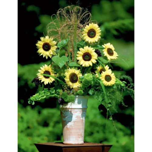 Арт. 91063 Виробник Benary (Німеччина) Ультрарання серія висотою 130-140 см з рясним бічним розгалудженням. Квіти лимонно-жовтого кольору з чорною серединкою, діаметром 12 см. Цвітіння рясне та тривале. Термін вирощування до зрізу становить 10-12 тижнів. Використовується для групових посадок та створення букетів. Світло -, теплолюбива, посухостійка культура, яка віддає перевагу легким, родючим грунтам. На постійне місце насіння висівають у квітні - травні гніздами по 2-3 насінини на глибину 2-5 см, на відстані 30-40 см. Особливого догляду рослина не потребує.