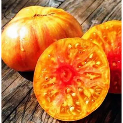 Арт.20997 Виробник Геліос (Україна). Середньосстиглий сорт. Кущ невисокий, висота — 40-80 см. Не потребує підв'язування. Маса плодів: 150–300 грамів. Плоди жовто-жовтогарячі з яскраво-рожевими смугами, плоскокруглі з пухкими плічками та чітко помітною ребристістю. Солодкий помідор із вибуховим фруктовим смаком, м'якоть соковита з ніжним томатним ароматом. З цих томатів готують чудові кетчупи, томатну пасту, соуси. Містять багато корисних речовин у складі, підходять для дитячого та дієтичного харчування.